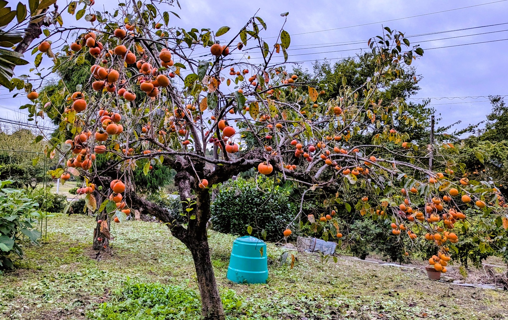 2か月ほど前に柿の実がたくさん実り過ぎて、枝が折れちゃった話をしました。折れた枝にかなりの数の柿がついていたので、もったいないなぁ熟していたら食べられたのにぃ、なんて悔しい気持ちもありました。これですっごい数が減っちゃったな、と。